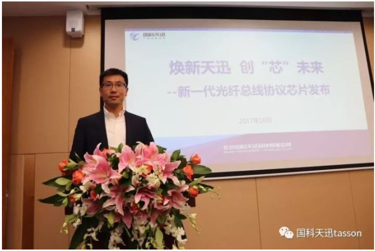 国科星空app登录入口-星空online(中国)市场部经理徐俊亭为大家讲解并发布国内高可靠光纤通信领域的首款总线协议芯片产品。